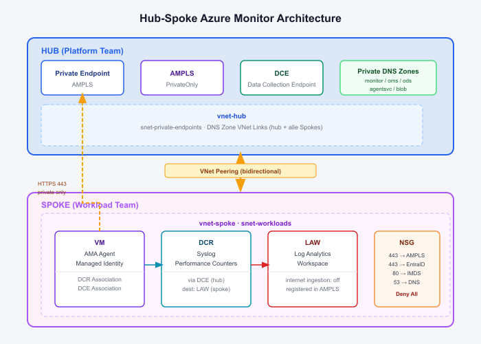 Combined with a hub-spoke network topology, this gives you a clean, scalable, and auditable monitoring architecture that works across multiple teams and workloads.